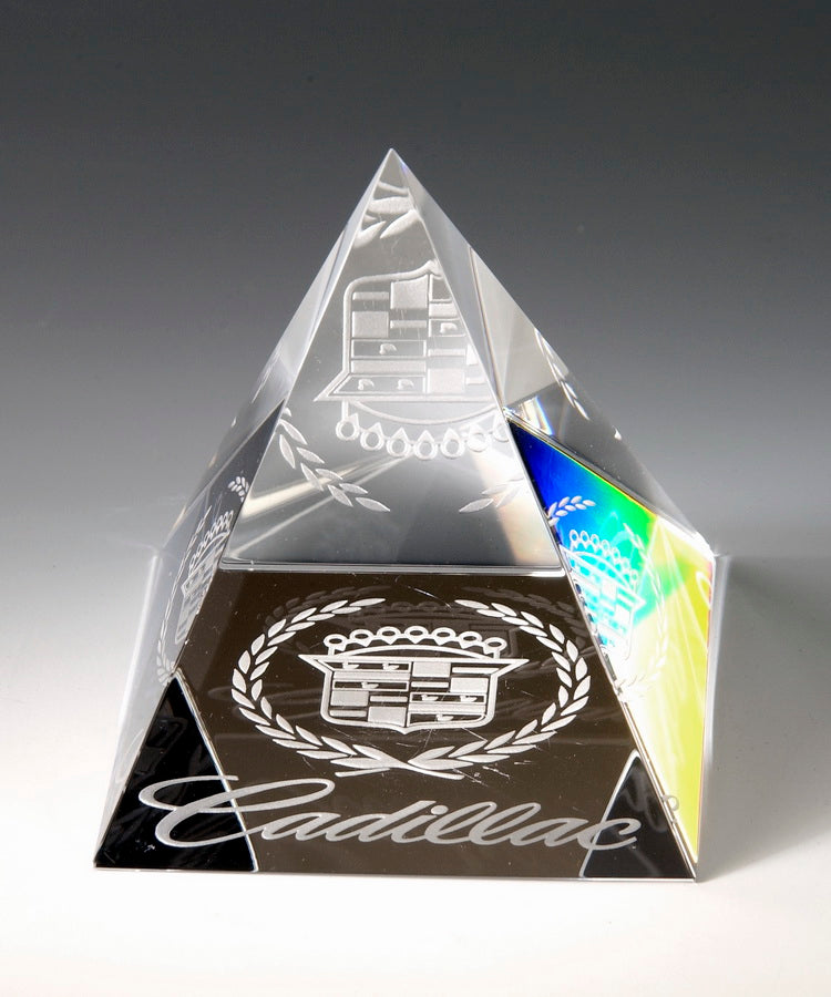 Engraved Crystal Pyramid Paperweight